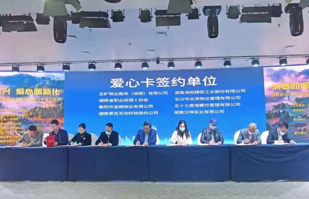 湖南省委统战部、湖南安邦制药股份有限公司、长沙市新化商会等单位现场进行爱心卡认购签约。五矿物业服务(湖南)有限公司、湖南汉坤实业有限公司等16家单位现场签约,签约销售达500余万元。